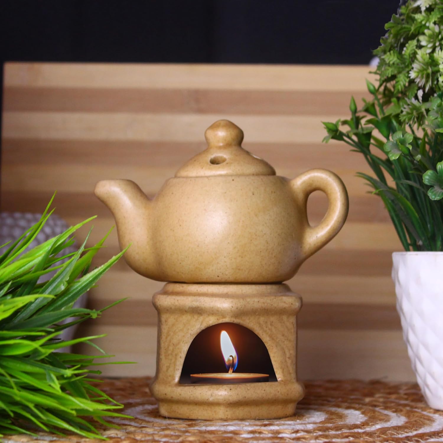 With this handcrafted Pottery Ceramic Essential Oil Burner, you may elevate the environment of your house. Designed to gently warm your favorite essential oils with a tealight candle, it emits a pleasant, continuous aroma that refreshes and soothes any room. The exquisite ceramic design adds a sense of elegance to your space while also serving as a natural diffuser and tiny humidifier.