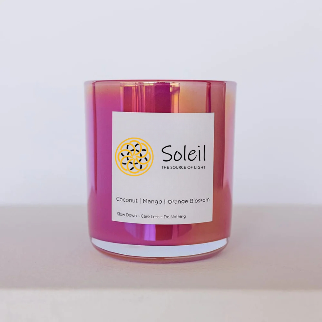 The Soleil Candle Jar provides a warm, elegant illumination to any environment. Crafted from bright frosted glass and filled with fine wax, it provides a calming scent and a clean, even burn—ideal for relaxation and home décor. Light up your moments with Soleil.