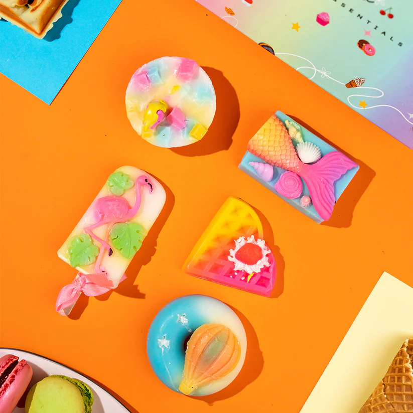 Colours to brighten up your bath time. Enjoy a cool shower with your bathroom feeling like a tropical paradise! 5 soaps of different flavours and different fragrances, yet the same goodness!